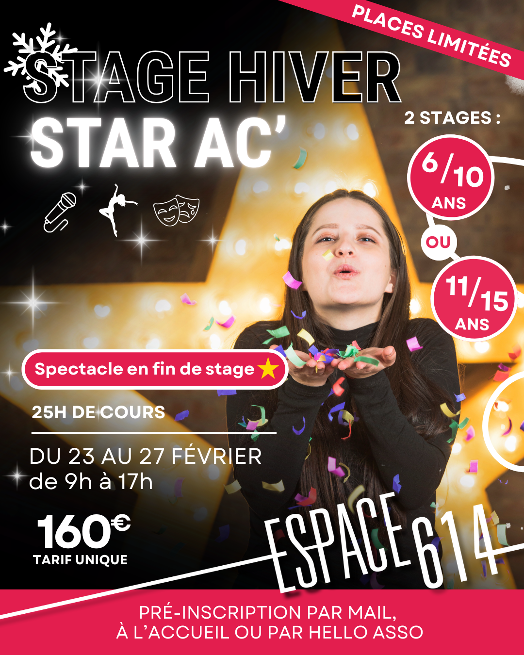 🎤 NOUVEAU FORMAT – STAGE STAR AC’ 2026 ! 🌟Du 23 au 27 février 2026, embarquez vos enfants et ados dans une semaine de chant, danse et scène inspirée de la célèbre Star Academy !